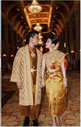 在主仪式上,蓬索雷亚克公主身着一袭定制的意大利缎面礼服,礼服上绣有高棉图案,头戴钻石王冠。西式晚宴上,她又换上一袭白色羽毛礼服,散发出20世纪20年代的复古气息。在其他仪式中,公主则身着各式传统高棉服饰,佩戴大量珠宝,象征着她家族的传承。